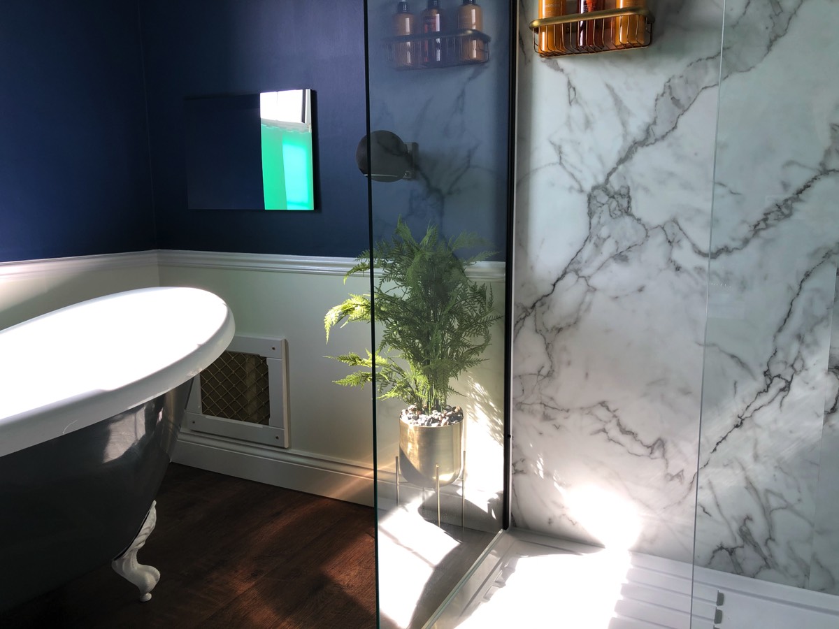 Converted from what was once a bedroom to the now sumptuous and inviting main house bathroom.